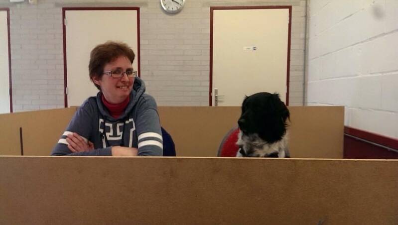 Op bijgaande foto zie je mij en Douwe begin 2015. Douwe was hier 2 jaar jong en mocht voor de 1e keer met mij mee naar de opleiding tot Natural Dogtrainer & Behaviour Consultant. Onze ruimte was fijn afgeschermd, zodat Douwe daar vrij kon bewegen. Al snel vond hij dat hij - zijn bijnaam was klauterkabouter - op de stoel naast mij mocht zitten. Hij deed de naam klauterkabouter eer aan totdat hij eind winter van dit jaar een kruisband scheurde. Toen deze kruisband na een operatie weer hersteld was en we konden gaan revalideren scheurde hij ook nog eens nummer twee. Nog een operatie volgde. Je zult begrijpen dat hij weinig meer klauterde. En terugkijkend, klauterde hij voor het eerste ongeval ook al minder dan voorheen. Dat sluipt er soms zo langzaam in, dat dit niet direct opvalt. Tijdens het herstel klauterde hij alleen nog met de hulp van een opstap op de bank thuis. Maar verder niet. Na het reguliere traject zijn we nog een traject gestart bij een holistisch werkend dierenarts. Twee operaties met dus ook twee keer narcose heeft echt wel impact op het hele lijf en uit de metingen bleek dat ook. Vorige week gingen we terug voor de 1e controle. En wat er daar gebeurde… voor ik het wist zat Douwe op één van de twee stoelen in de spreekkamer. Naast dat de dierenarts al heel tevreden was, vertelde dit gedrag me ook dat we op de goede weg zijn.